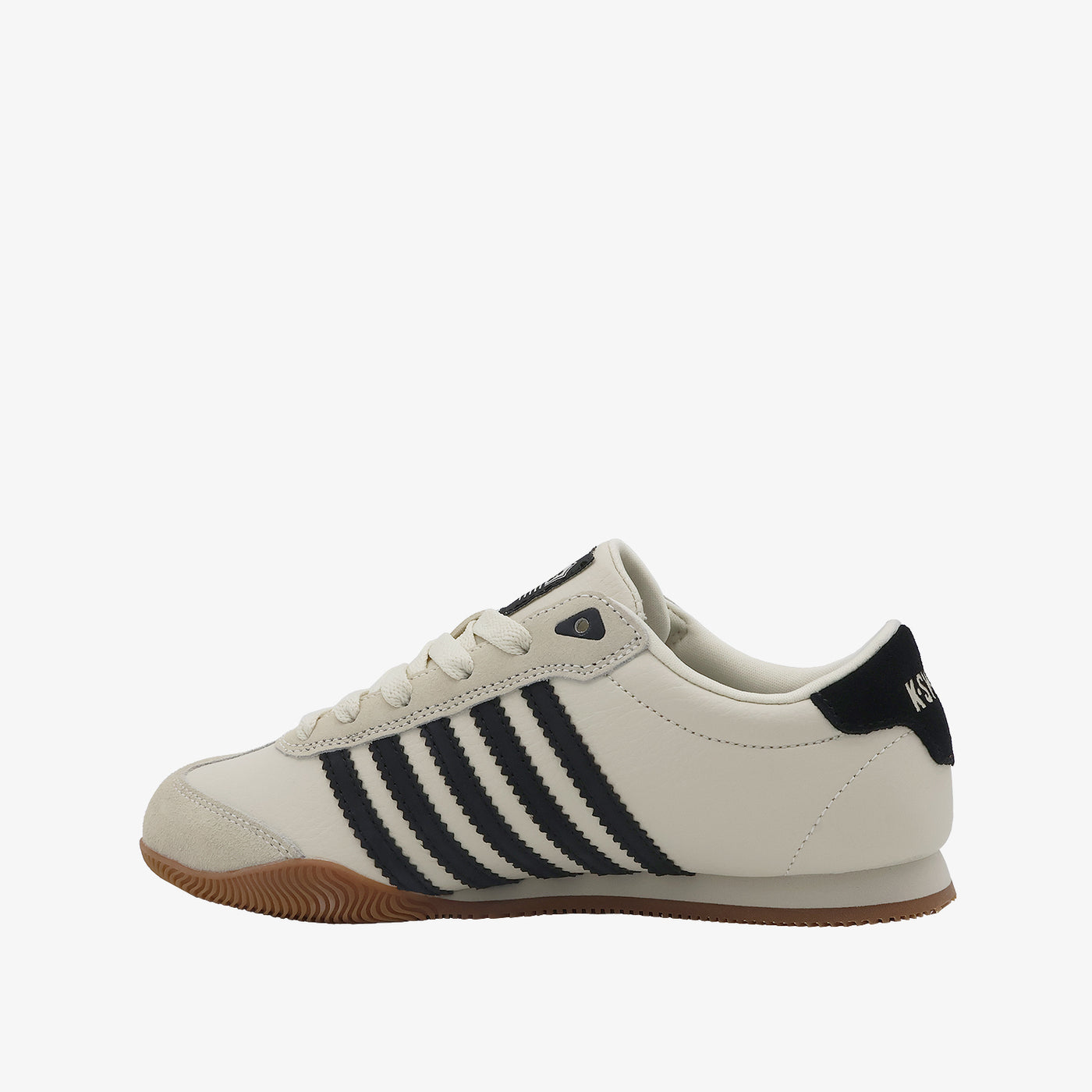 This court-inspired sneaker features a sleek combination of microfiber and suede upper, paired with a cushioned insole for comfort, an EVA midsole for lightweight support, and a durable rubber outsole for traction. Its clean plain base with bold contrast stripes gives it a classic, sporty look that’s timeless and versatile.
