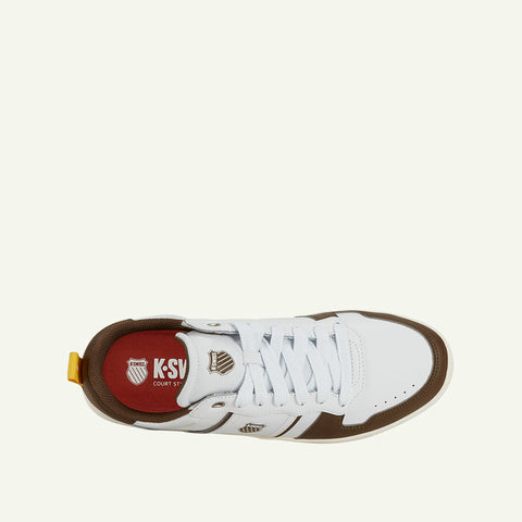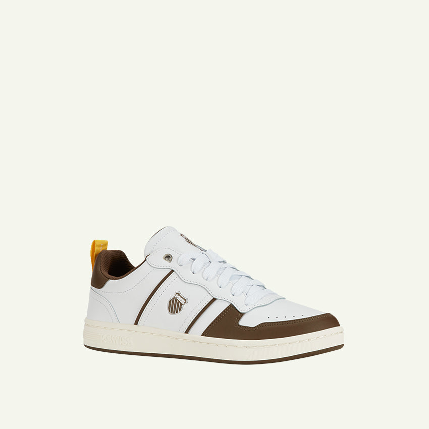 The Lozan Match is the new member of the Lozan series. This new design has a contempory & timeless look with some retro tennis details from the 70’s. The toe cap design gives a retro sport look to this casual chic court. This Lozan Match is part of the shield collection that celebrate the KSWISS original and unique shield logo.