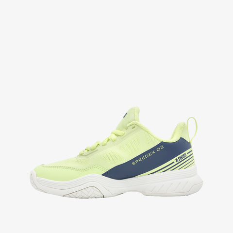 The SpeedEx 2 is the ideal tennis shoe for entrylevel players seeking to enhance their performance on court. The SpeedEx2 is cushioned with a compression-molded K-EVA midsole, that ensures a plush and supportive experience on court. Its non-marking Aosta 7.0 rubber outsole, featuring a modified herringbone pattern, strikes a great mix between slide and grip traction across various court surfaces.